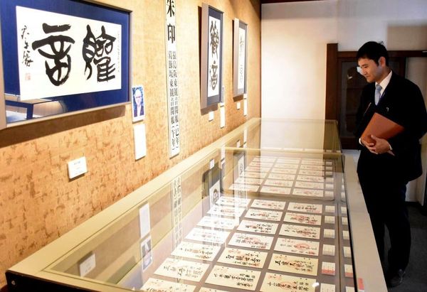 茨城県古河、八千代、五霞の3市町などを範囲とする12年に1度の霊場巡り「葛飾坂東観音御開帳」に合わせ、札所の寺院の御朱印を一堂に集めて紹介するミニテーマ展が、古河市中央町の篆刻(てんこく)美術館で開かれている。会場には約80点が並ぶ。同展は22日まで。
