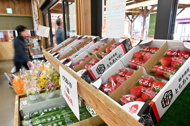 鹿沼市産いちご「とちあいか」を特価販売するほか、いちごのデザート、この日限定の「いちごサンデー」などがお目見えする。