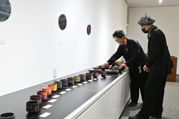 スギに草木染 独自技法で食器制作 清水さん作品展、販売も 14日まで 茨城・水戸