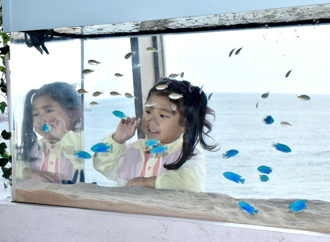 同企画は2023年から始まり、今年で4回目。国営ひたち海浜公園との同館の連携の一環で実施している。今回は、みはらしの丘のネモフィラと、丘から見える海と空の風景を水族館ならではの「青」で表現した。両親と埼玉県から訪れた、青木瑠璃さん(4)は「青い魚は初めて見た。しっぽが青くて面白かった」と話した。