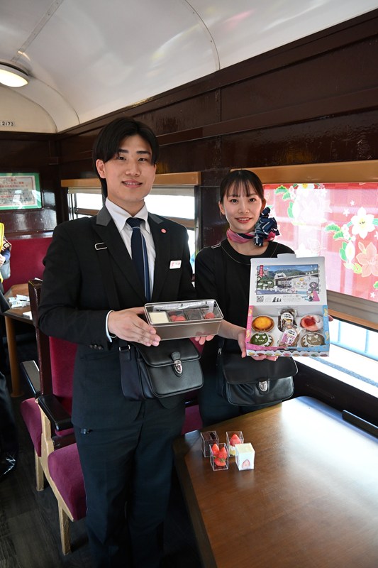 下り列車は車内販売のアテンダントが薦めるアイスクリームやクッキーなどを提供。上り列車では今月に群馬県みなかみ町にある専門店のチーズタルトを、5月には同町の観光農園の限定スイーツを楽しめる。