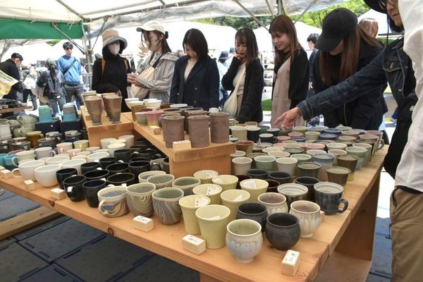 企画展では「選(よ)り取り見取り湯呑(ゆのみ)展」を初めて実施。作家が厳選した湯呑みやお茶に関する品々を並べる。好評の「ぐい呑(の)み1000個展」は出店者によるぐい呑や酒器を展示。地元酒蔵の試飲コーナーも用意する。