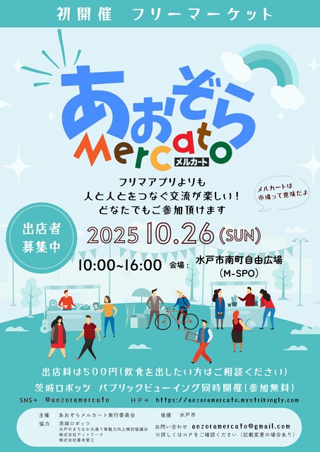 水戸黄門漫遊マラソンが開催される日に、茨城ロボッツのアウェー戦パブリックビューイング(実施は茨城ロボッツ)と芝生広場をメインにフリーマーケットを開催することで、街の賑わいを創出する。様々な交流を通して、人がつながり、いっそう水戸が素敵な場所になることを目的としている。