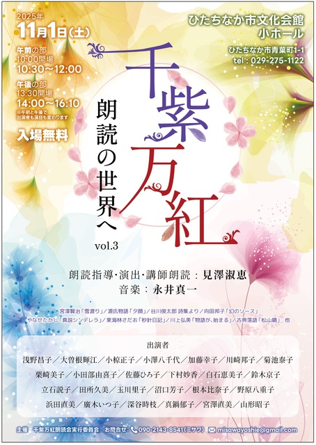 | お問合せ | 千紫万紅朗読会実行委員会 |