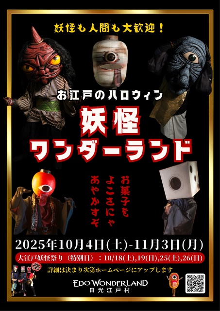 神無月、江戸の町に異変あり! 絵草紙から、押入れから、家の隙間から…妖怪たちがぞろぞろと現れはじめた! 驚きとともに始まる、不思議で愉快な秋の物語。江戸ワンダーランドが、妖怪たちの遊び場「妖怪ワンダーランド」に変貌する。特別日には、妖怪たちが大集結する“大江戸妖怪祭り”も開催。妖怪も人間も大歓迎! 変化して、踊って、笑って、ちょっぴり怖くてとびきり楽しい“和のハロウィン”を、江戸の町で体験しよう。