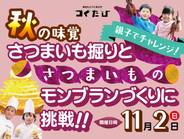 つくば市の松田農園で「さつまいも掘り」を体験後、ホテルに移動して、親子別々の料理教室を開催。保護者は、ホテルシェフ直伝のイチからつくる「さつまいものスープ ~ホテル仕立て~」を。子どもは、ホテルのパティシエが教える「さつまいものモンブラン」づくりに挑戦!そのほかにも、親子で参加できるゲームやフォトスポットでの撮影会も開催する。
