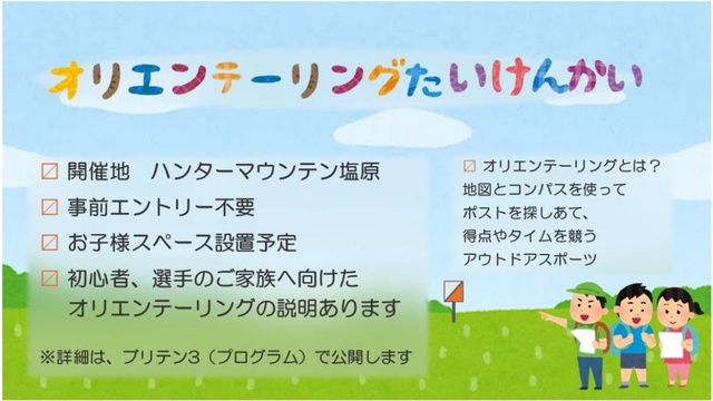 ハンターマウンテン塩原を会場として、 2025年度全日本オリエンテーリング選手権大会を開催。これに併せて、ハンターマウンテン塩原エリアでオリエンテーリング体験会を行う。スタートしてから、地図に示されたチェックポイントを順番に巡り、ゴールするまでの所要時間を競う。地図とコンパスを頼りに、ポイントを探す旅に出よう。