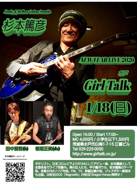 杉本篤彦CDデビュー30周年「Regrowth」発売記念ライブ。今まで24枚のリーダーアルバムをリリース、日本全国でライブツアー活動を展開するSoul&Jazzギタリスト杉本篤彦の「Buried Treasure~失われた財宝」発売記念ライブ。人差し指と親指で弾く独特の奏法から疾走感溢れる軽快なギターサウンドが持ち味。出演は、杉本篤彦/ギター、田中晋吾/ベース、板垣正美/ドラム。