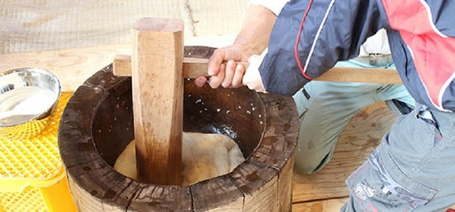 昔ながらのお正月を体験! 杵(きね) と 臼(うす)を使ってお餅をついてみよう! 各回25名(1日先着各100名)。