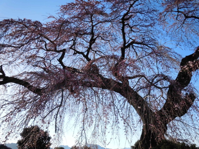 見事な古木のしだれ桜が春を告げる