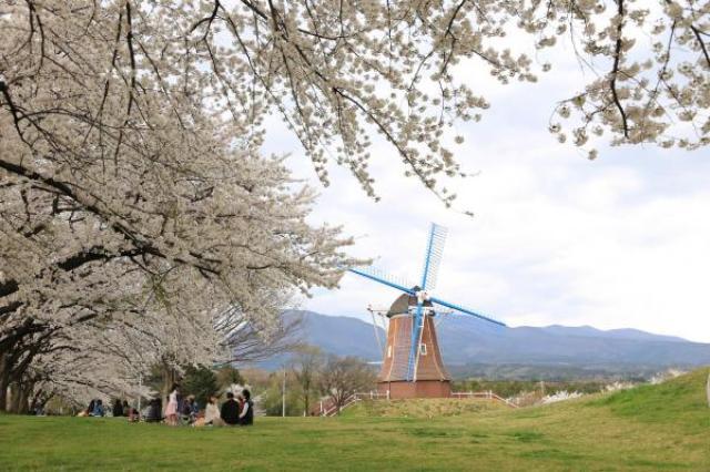 高さ22メートルのオランダ型風車が目印の道の駅。約500本のソメイヨシノが牧場内に植えられており、満開の桜の下ではシートを広げのんびりとお花見を楽しむ人々でにぎわう。また牧場内にはローラー滑り台や展望塔・アスレチック遊具などの公園施設が設置され子どもたちに人気。花木農産物直売所「さんぽ道」が隣接している。
