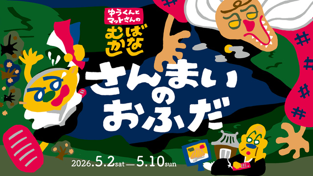 水戸芸術館専属劇団ACMのメンバー、大内真智と小林祐介が結成した絵本の読みきかせユニット「ゆうくんとマットさん」。こどもの観劇デビューにぴったりな、家族で楽しめるお芝居を上演する舞台シリーズ。今回は、楽しくてちょっぴりこわい日本の昔話「三枚のお札」を、観客の1票で結末が決まるマルチ・エンディングで舞台化。お得な親子割引セット券もある。