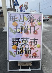 毎月第4土曜日に開催している野菜市。朝仕入れた野菜を直販するイベントである。なお、店内では地元産の野菜も販売している。