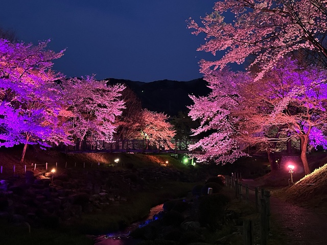 道の駅矢瀬親水公園でのライトアップを実施。綺麗な公園樹木および渓谷等のライトアップを見に行こう。土日祝日は温かい飲食の出店を予定。 ※出店は週末のみ。近隣住民や来場客に配慮し酒類の販売は実施なし。レジャーシート等での花見席の確保や宴会等禁止