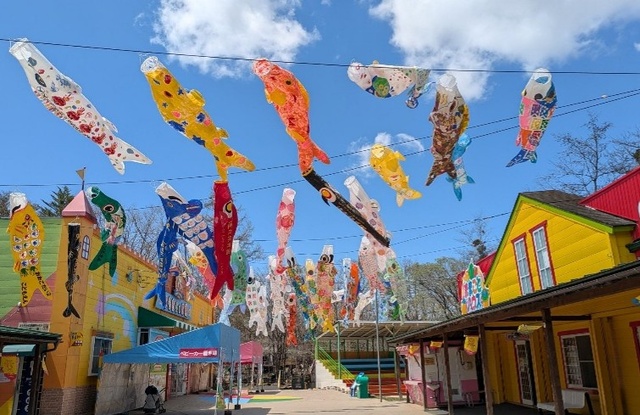 地元の幼稚園・保育園のおともだちに絵付けをしてもらった全長2mのジャンボこいのぼりを展示! 約20施設が協力をしての開催。40匹のこいのぼりは圧巻! 「遊びに来てくれる子ども達に元気に遊んでほしい。滝を昇る鯉のように大きく元気な子に育ってほしい」という思いを込めたオリジナルこいのぼりをぜひ見にいこう!